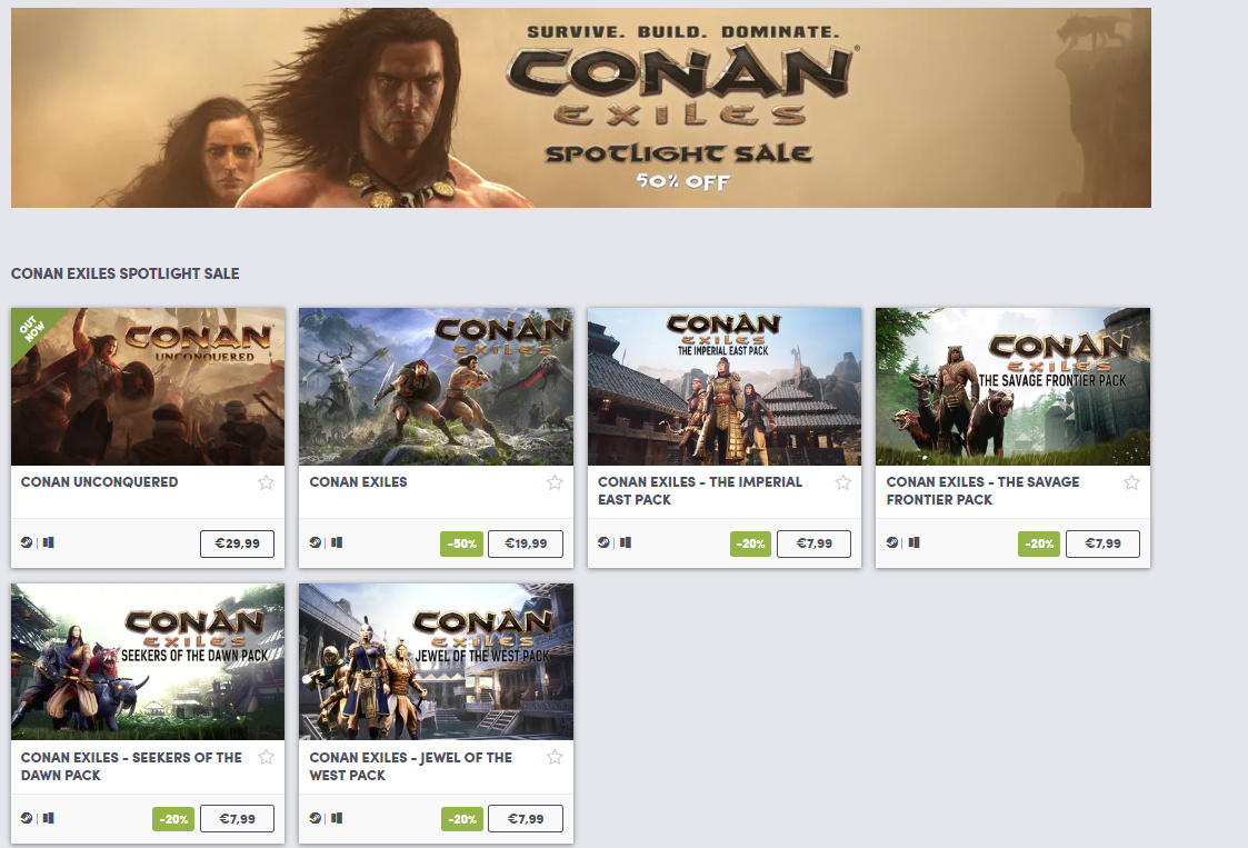 Conan Exiles (vanlig utgåva), Complete Edition & Deluxe i Playstation plus double discount rea. 30% om man saknar ps plus (men det känns som bortkastad deal eftersom man inte kan spela online då