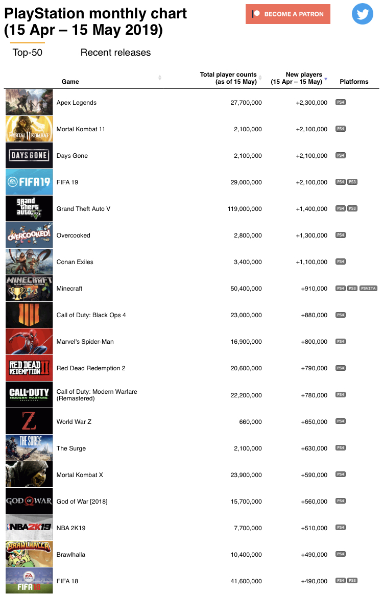 We don’t need no “MyPS4Life leak” to learn all the relative numbers – that Anthem was three times less popular in February than For Honor, but two times more popular than Mortal Kombat X.
