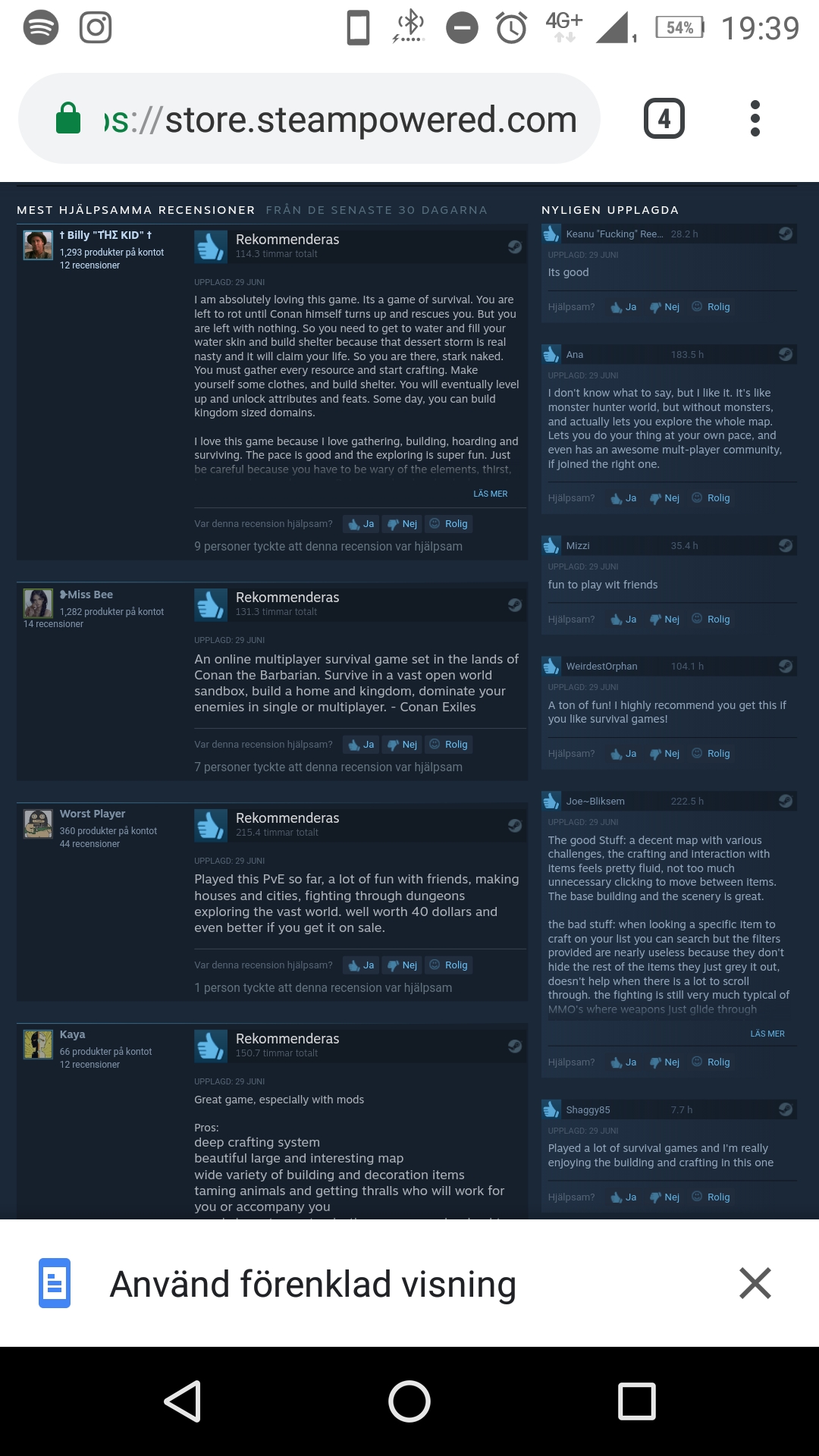 Mååånga positiva reviews där spelare lagt minst 100-200h timmar. Detta är spelare som aldrig hade lagt en review utan den review knappen. Kikar man på ration idag så är det 199 positiva av 205 st. Conan Exiles är så jävla värt att ha overall 70% positiva.