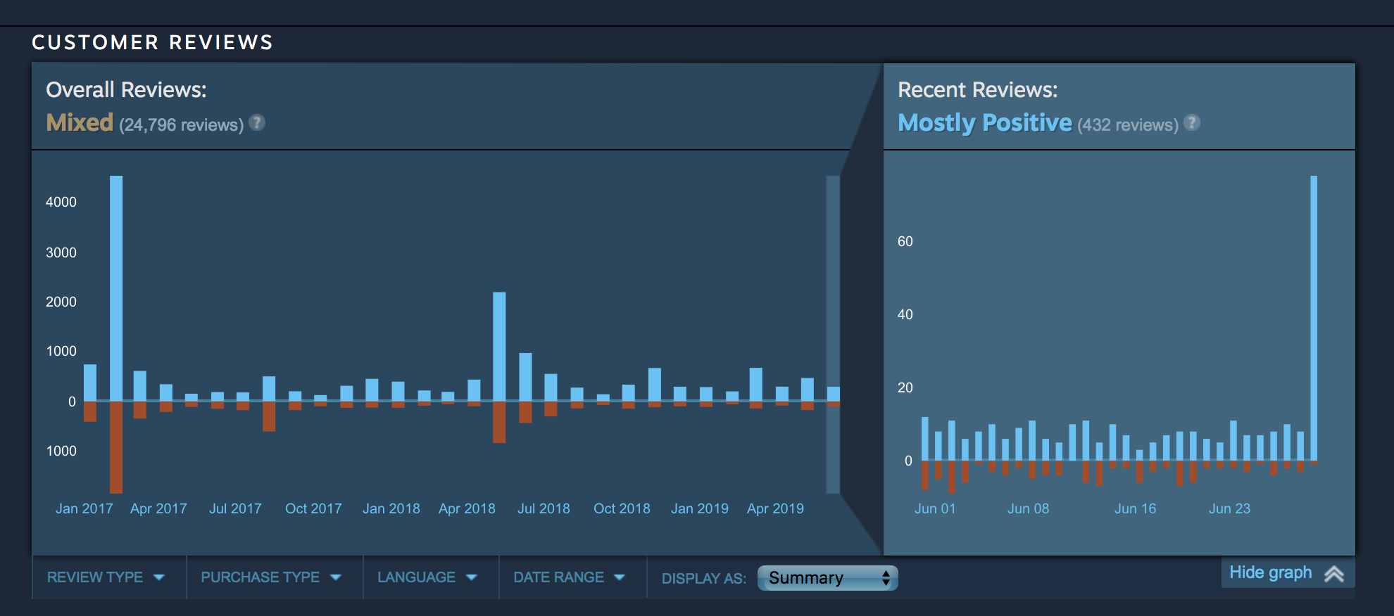 Kommit review knapp i feeden. Gillar det för spelet kommer komma upp på 70 %+ positiva nu overall = bättre långsiktiga intäkter