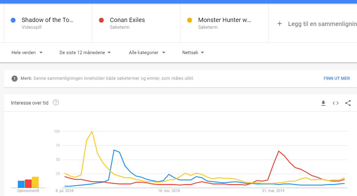 Monsterhunter og Conan Exiles kniver likt. Akkurat nå ligger Monster Hunter på 2 plass på salgslista.