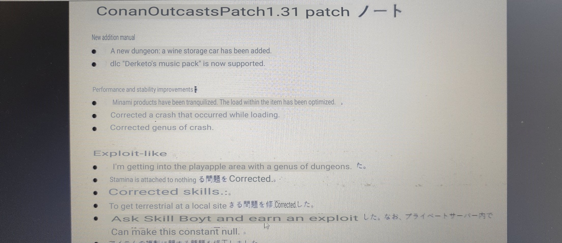 För PS4 “Conan Outcast” kommer patch 1.31 att distribueras från cirka 0:00 (tisdag) klockan 0:00 (tisdag). Observera att om du spelar online kommer du att kopplas bort från servern. Kontrollera följande för korrigeringsanteckningar.