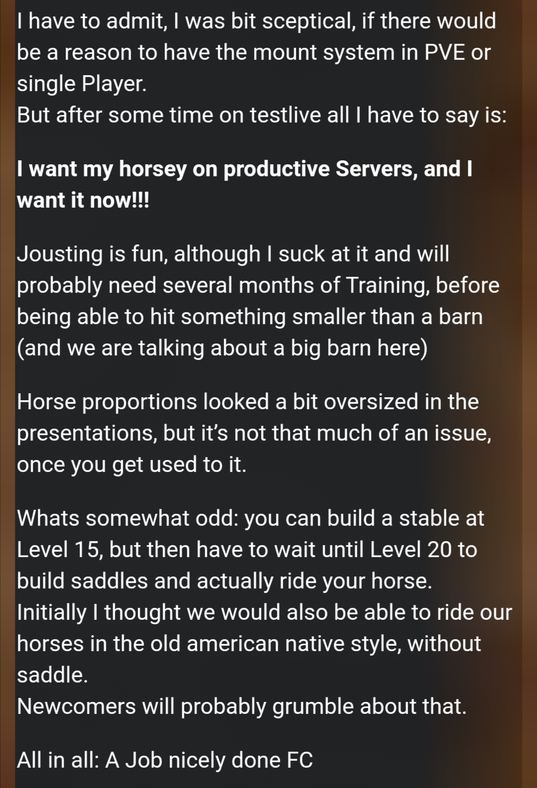 Blir spännande och se när Mounts släpps. Jag hoppas på nästa vecka. Tycker de ser väldigt polerat ut på testlive