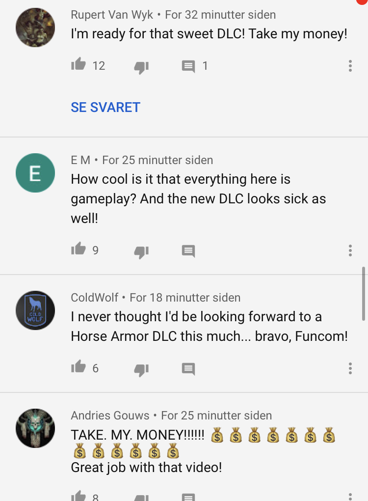 Mounts vil ikke bidra med annet enn at CE får en litt høyere snittplassering på GTS fremover - organisk vekst (samt ekstrasalg ifbm. f2p og salgsevents, da). Ingen “hype” eller spikes på Google Trends uten markedsføring (noe jeg aldeles ikke ser for meg at Funcom kjører før den store oppdateringen og nytt map H1 2020).