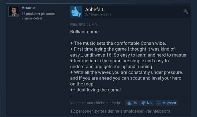 - runt 70 % positiva både på meta och Steam är över min förväntan. Det bådar gott för framtiden?