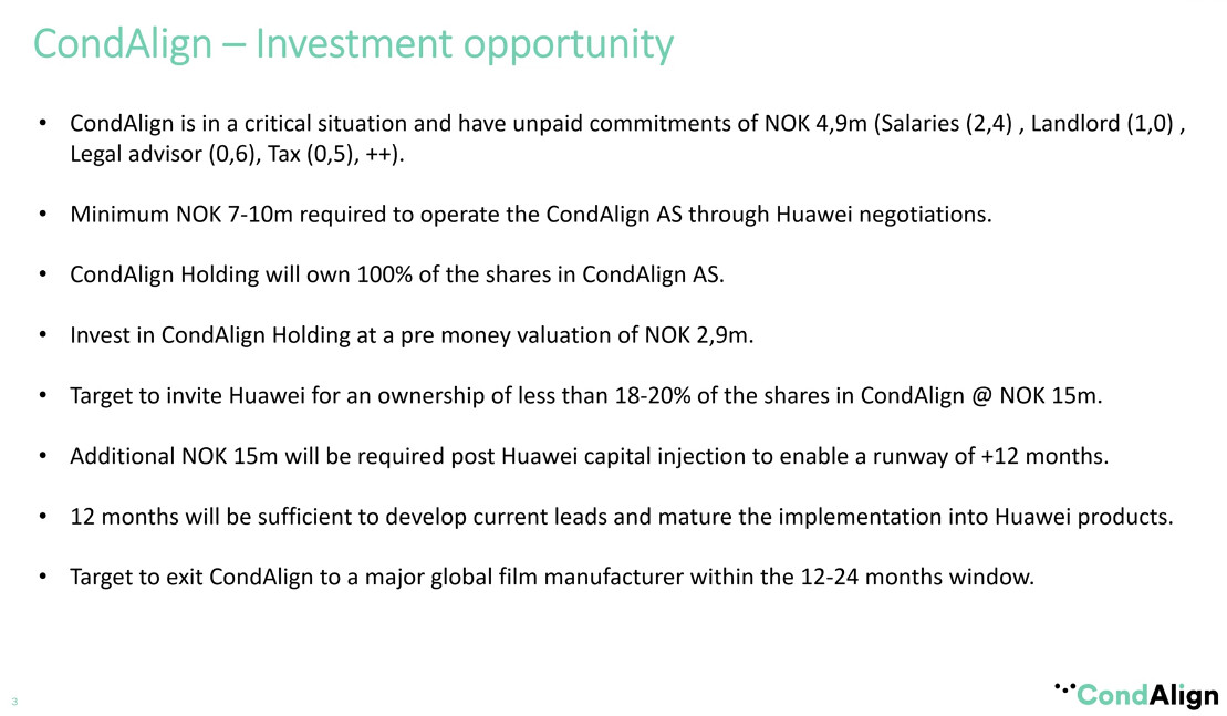 Totalt ca 30 mill i kapitalbehov neste par årene. De håper Huawei står for 15 av dem.