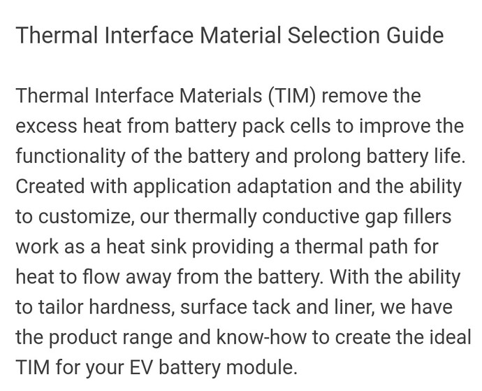 Sjekk hele produktspekteret her: https://www.tapesolutions.saint-gobain.com/na/markets/automotive/ev/thermal-interface-material