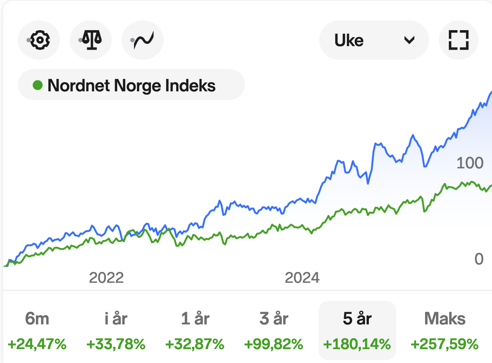 First Global Focus vs. Nordnet Norge Indeks siste fem år.
