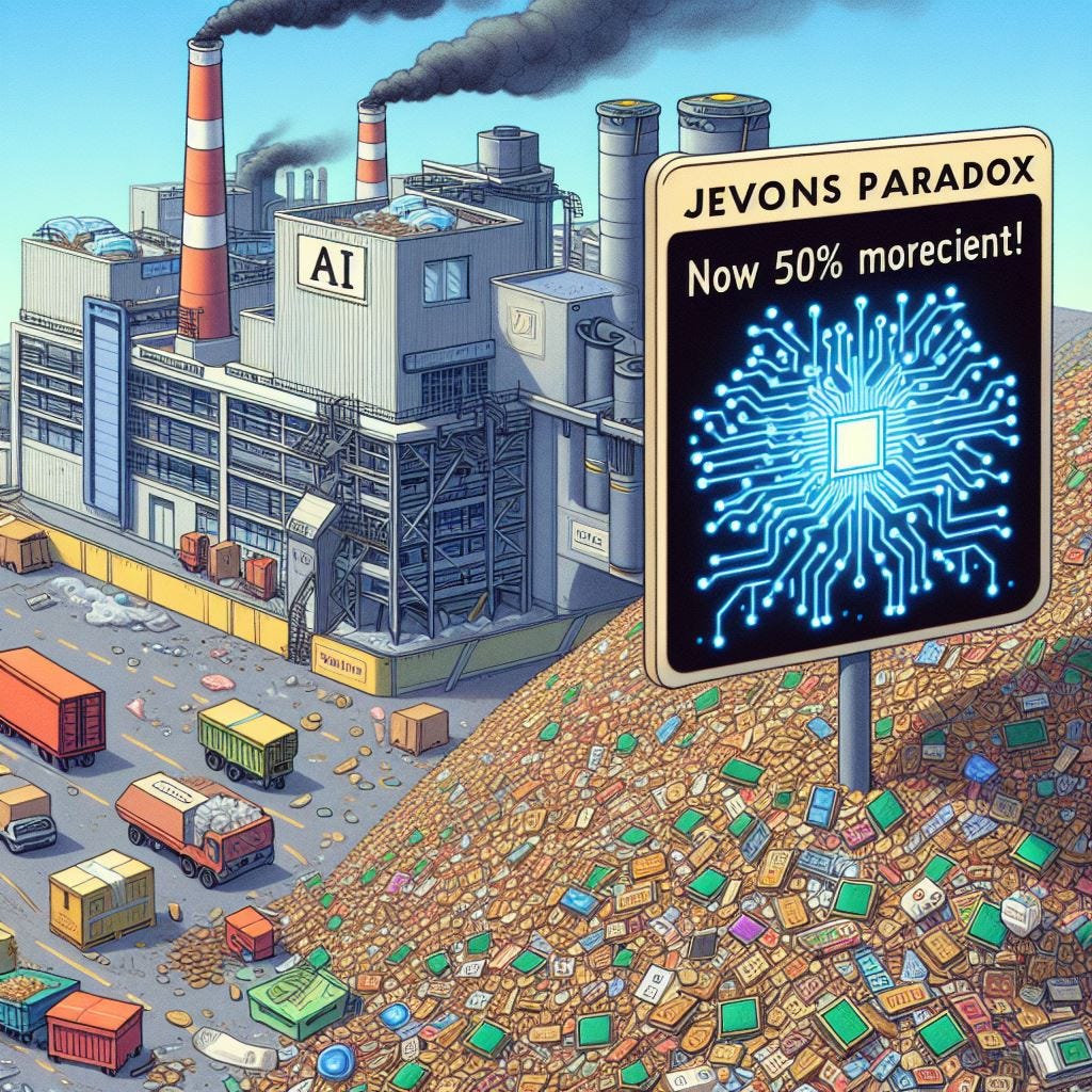 Jevons paradox vil selvsagt også gjøre seg gjeldende i AI, og gjøre at folk bruker AI på ting som er for dyrt nå, helt uavhengig om det er nyttig eller ei.