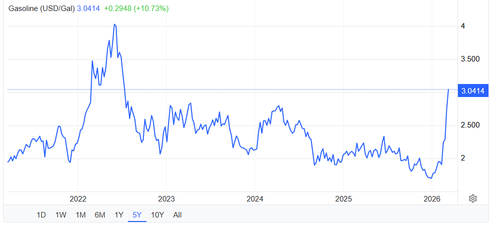 I USA kommer selvsagt inflasjonen til å øke i mars, også fordi inflasjonen i mars i fjor var lav (0,0%), slik at inflasjonen år over år i mars 2026 kommer til å øke fordi allt annet en null inflasjone MoM vil gi økt YoY inflasjon