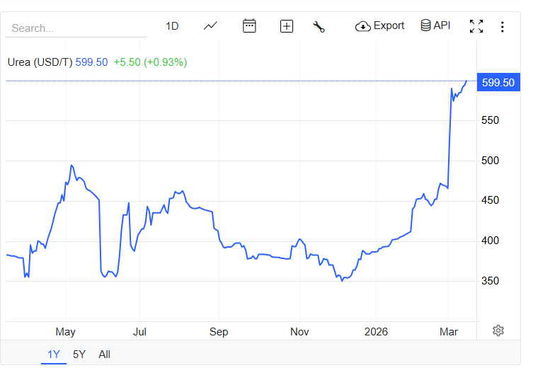 Det er klart at dyrere mat er kjedelig for all verdens konsumenter, og at dyr gass ->dyr urea → økte kostander for bønder → dyr mat, ikke bare påvirker kassalappen til de som spiser mat, oss all, men også gjødsel-produsenter, som får økte gass-utgifter og bønder som får dyrere gjødsel.