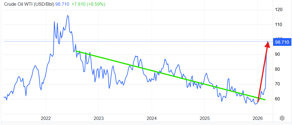 Spør du meg er 150 200 dollar over tid lite realistisk. Da må noe virkelig stort ryke i forsyningen. Typisk at eksporten gjennom Hormuz stopper klink opp eller at flere produsenter i regionen faller ut samtidig. Da snakker vi en helt annen krig enn den vi ser nå. Per nå gjør jo Vesten alt de kan for å hindre nettopp det. IEA slipper historiske volumer fra reservene og USA tapper også sin strategiske reserve. Hele poenget er å legge lokk på prisen før den løper løpsk så kortsiktige spikes kan absolutt skje. 120 140 er fullt mulig hvis det kommer nye sjokk, men 150 200 over lengre tid betyr i praksis global økonomisk krise og da kollapser etterspørselen også ganske fort og prisen presses ned igjen. Markedet prøver egentlig bare å prise én ting nå slik jeg opplever det. Nemlig om oljen fra Persiabukta fortsetter å flyte normalt eller ikke. Så lenge den gjør det blir ekstreme nivåer vanskelig å holde over tid.