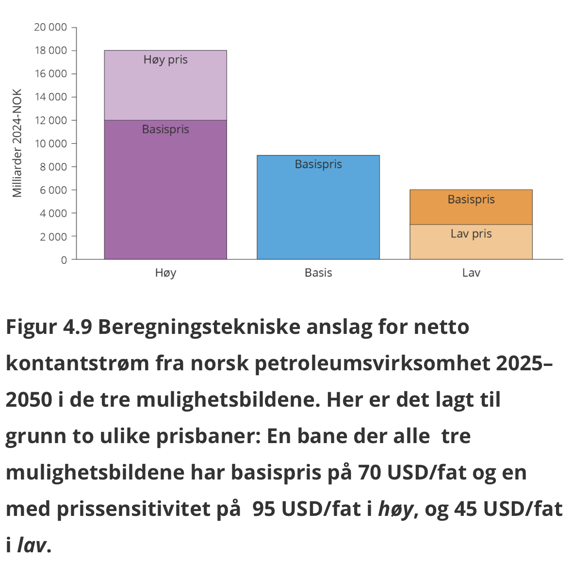 Staten tar høyde for scenarier med i 45 dollar/fat. Fortsatt lønnsomt, men jeg kan ikke skjønne annet enn at det er et utfall der det er et stort behov for at mange mennesker fra oljebransjen har noe annet å drive med.