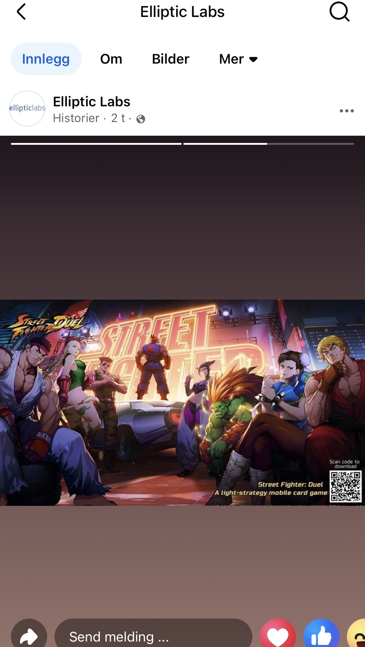 Tja… vet ikke om vi roter så langt ned. Dette er altså bilder som deles i «historien» til Elliptic Labs på Facebook. Det ble delt første gang for 23timer siden, det samme bildet for 3 timer siden og ett nytt bilde for 25 minutter siden. Så enten en gigafylla eller så har de fått lov til å hinte om noe som kommer.