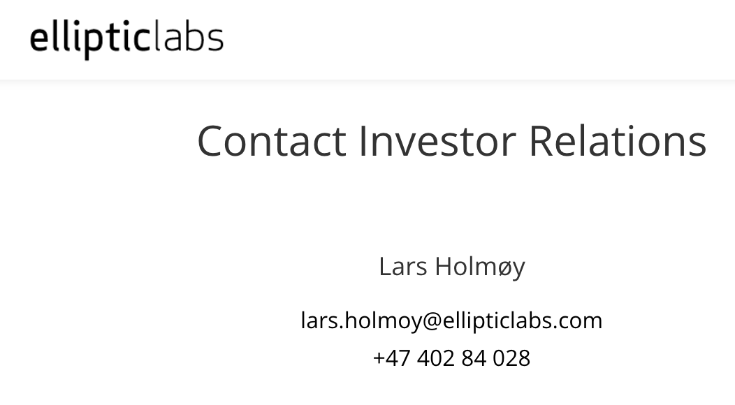 Å si at jeg tar feil er vel å ta litt hardt i. Sitter med rapporten foran meg nå: “We are also positive to Elliptic’s longer term prospects and