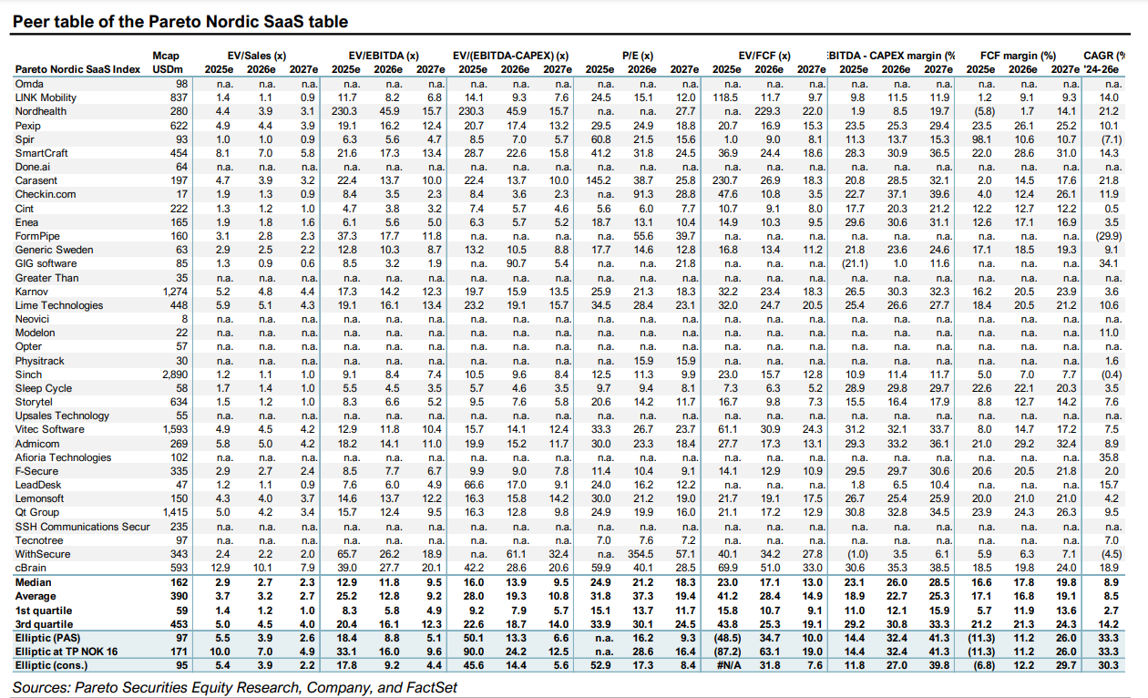 Peer table fra Pareto er bare tull - LINK, Pexip, Storytel etc. SaaS. ELABS er ikke et SaaS-selskap i min verden. Nevnte selskapers prising er ikke veldig relevante for ELABS.