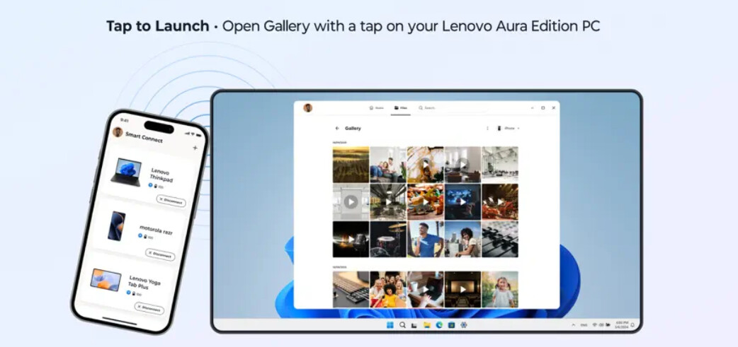 Ser smart connect appen på appstore(Iphone) under key features at den skal ha funksjonen “Tap to share” mot Aura edition laptops.