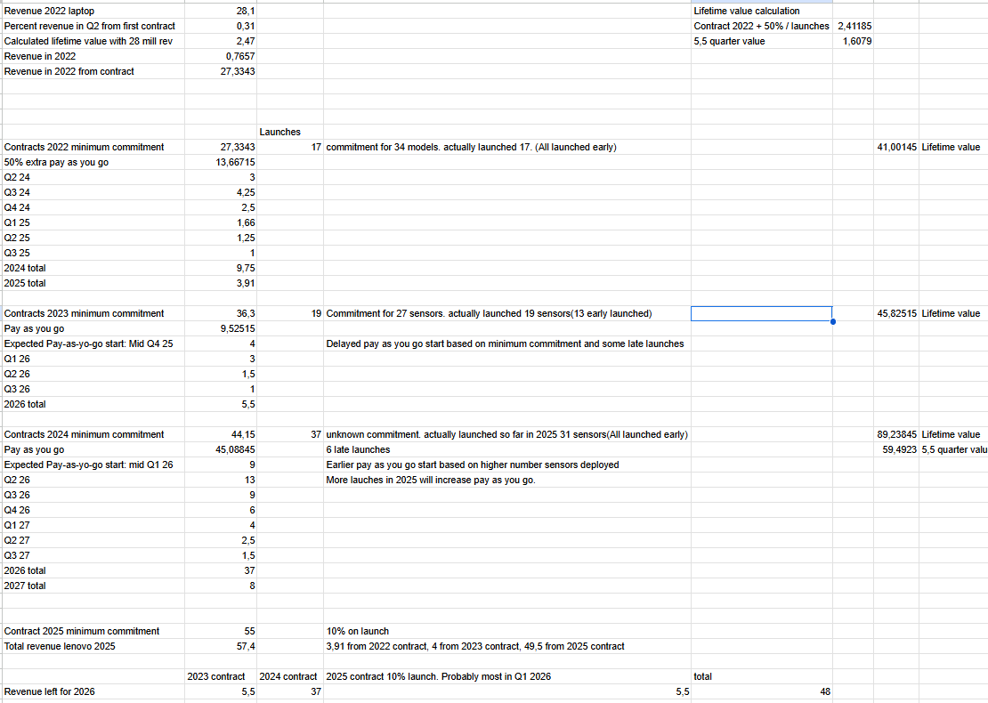 lifetime for ein model er typisk tre år fra lansering. så ein kontrakt varer i 3,5 år. Lenovo hadde ein enorm vekst i lansering 2025, basert på ordlyden i kontrakt, så vil veksten fortsette i 2026. så det er å forvente ein framtidig vekst i inntekter der.