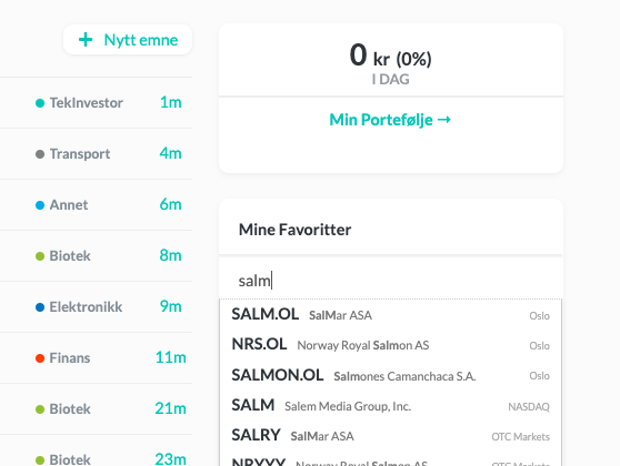 Også her når jeg trykker på TekInvestor logoen oppe til venstre, så merkerer den plutselig ‘T’ symbolet oppe til høyre.
