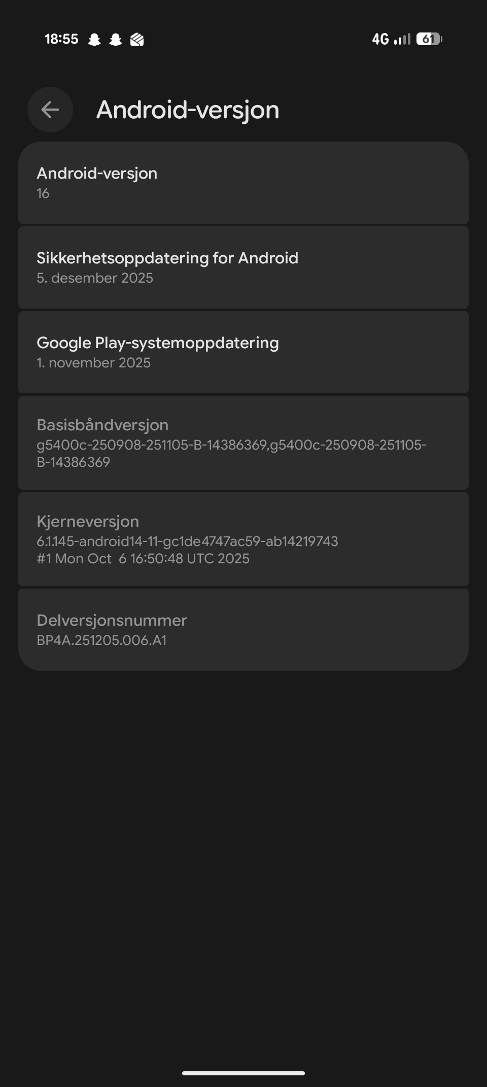 Appen har sluttet å virke, fikk oppdatering til mobilen forrige uke, kan ha med denne å gjøre. Har en Google Pixel 9 Pro som kjører Android 16.