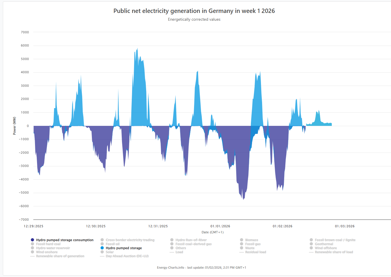 En annen ting som stort sett er totalt fraværende med Tyskland som “case study” er at Tyskland er eksportør av elektrisitet store deler av døgnet. Prisene i Tyskland må ses i sammenheng med denne handelen med andre land.
