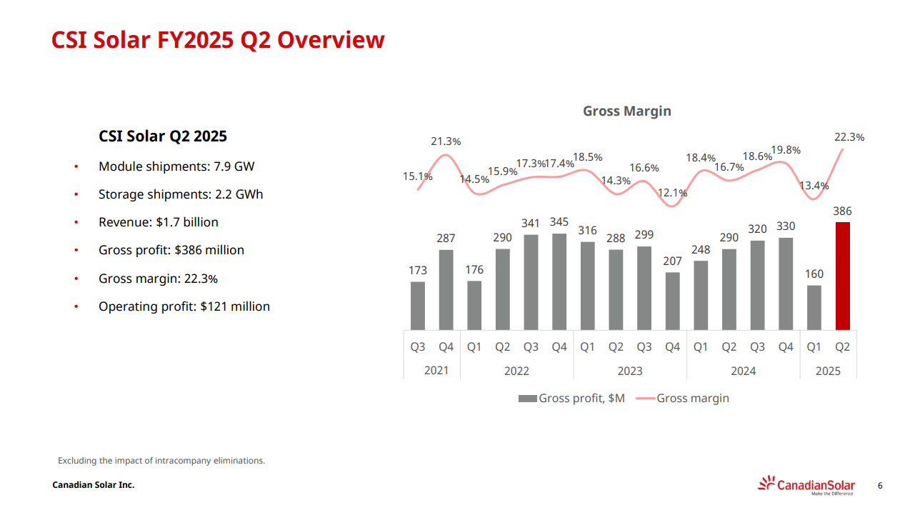 Attraktivt priset på flere nøkkeltall, P/S og P/B, sammenlignet med amerikanske pairs. Men dårligere lønnsomhet. Canadian er et kanadisk-kinesisk selskap notert i USA, og med mer og mer av produksjonen i USA.