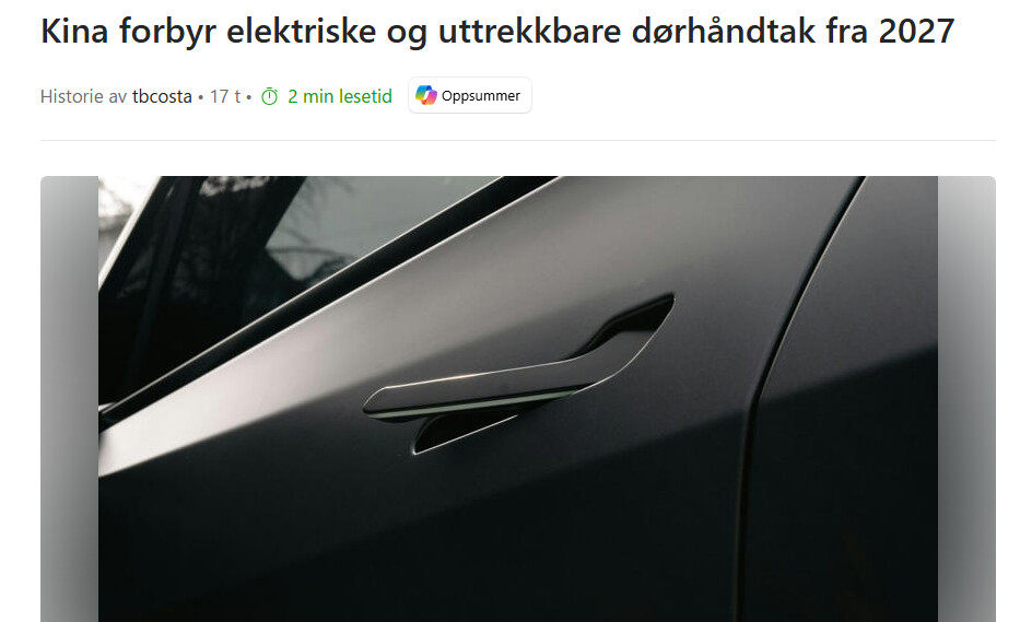 Det gjelder nok neppe håndtakene på utsiden av Tesla Model Y (som det er bilde av) som er mekaniske, ikke elektriske. På innsiden, så har de faktisk to dørhåndtak, ett elektrisk (knapp) og et mekanisk.
