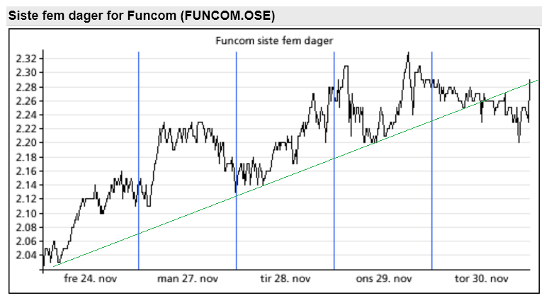 Burde ha skrevet at vi sluttet over den grønne streken, og men den jeg tegnet var ca 1 øre brei, så 2,29 - 2,30 same same.