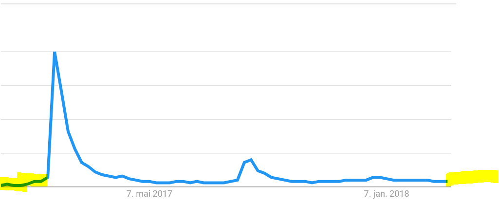 Stemmer bra, her er google trenden markert i gult, 6 uker før lansering.