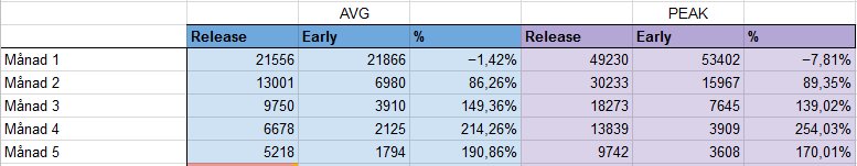 Når det gjelder sammenligningen med EA så blir det veldig spennende om 50 dager. Da er man på tidspunktet da Frozen North ble utgitt. Uken Frozen North ble utgitt hadde CE 861 004 spilte timer på Steam. Siste uke akkurat nå ligger på 761 348. Har vært nedgang i 53 av de siste 54 dagene når man sammenligner med samme dag uken før nå så bra de kommer med en oppdatering snart.