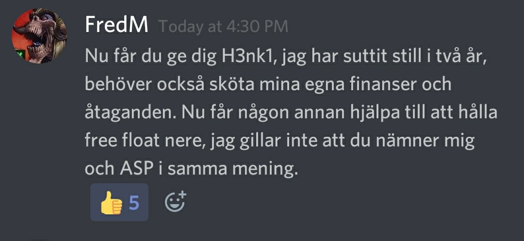 For øvrig mange som derimot har skrevet direkte stygge ting om ham på Discord - slikt holder jeg meg for god for.