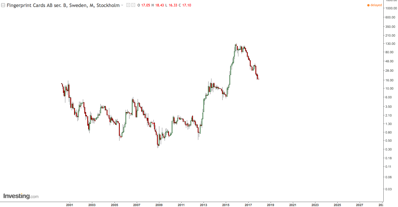 Når det kommer til split eller emisjon av en aksje har det ingen påvirkning på den tekniske bilden. Hver enkelte aktør som tilbyr teknisk analys korrigerer dette gjennom en “adjustment”. Noen aktører tilbyr ikke dette, og man ser derfor en gap i kursen. Investing.com justerer all emisjon og split. Første eksemplet jag kommer på utover Funcom er feks Fingerprint. Som dere sikkert husker gikk kursen opp mot 650 kr, men etter en 5:1 split er nå all time high gjennom investing.com på 130 kr.