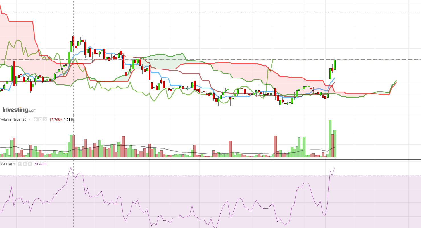Iflg skyen, så er vi, som @Paddy80 sier, i stratosfæren. Med store kjøp på 2,60, er det ikke noe tegn til noe brudd ned gjennom toppen av skyen den neste måneden. Vi er mao godt inne i en positiv trend.