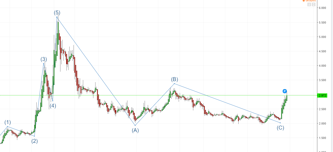 Kort sagt, fraktaler for utvikling i aksjer med oppgang 1-2-3-4-5 og så nedgang ABC
