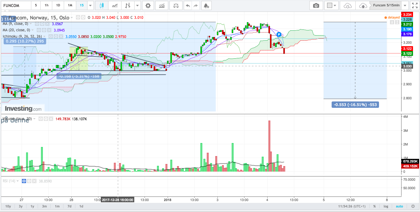 Kjøpte på 3.050 nå, vi skal jo oppover og nå har den korrigert 9% intradag