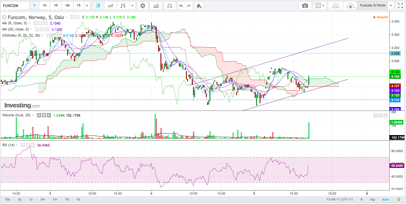Rent TA messig ville jeg gjerne sett at vi passerte 3.34 som var høyeste kurs 2 dager på rad før jeg kjøper igjen… (da er HS fullstendig avkreftet og bull er i kontroll)
