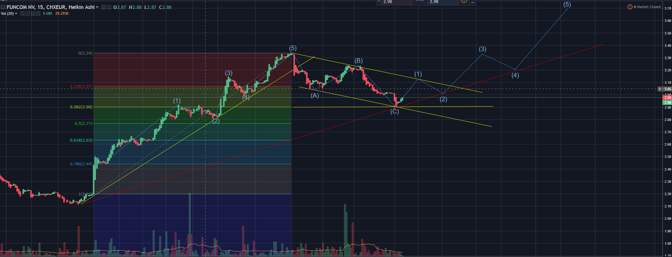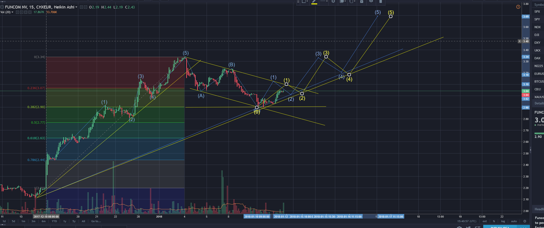 Forsåvidt er det ikke noe gale med elliot waven jeg tegnet første gang (blå) for den settes først der hvor oppgangen (første rushet) stopper, og det kan fortsette i morgen så da flyttes punkt 1 videre opp helt til vi får ny nedgang.