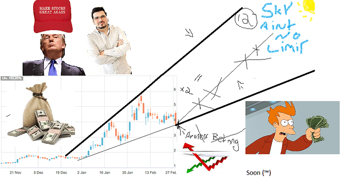 Enig i at HS’en ikke er formasjonen vi ser @Irathi og @Bullishproof - mener også vi skal ned mot lavt 3-tall i første omgang. Gjelder å være klar. Kanskje kjøpe 50% på 3.2 og resten om den går ned til 2.80? Sterk motstand nå på 3.80 (ref. betonggulvet til @iHHelg