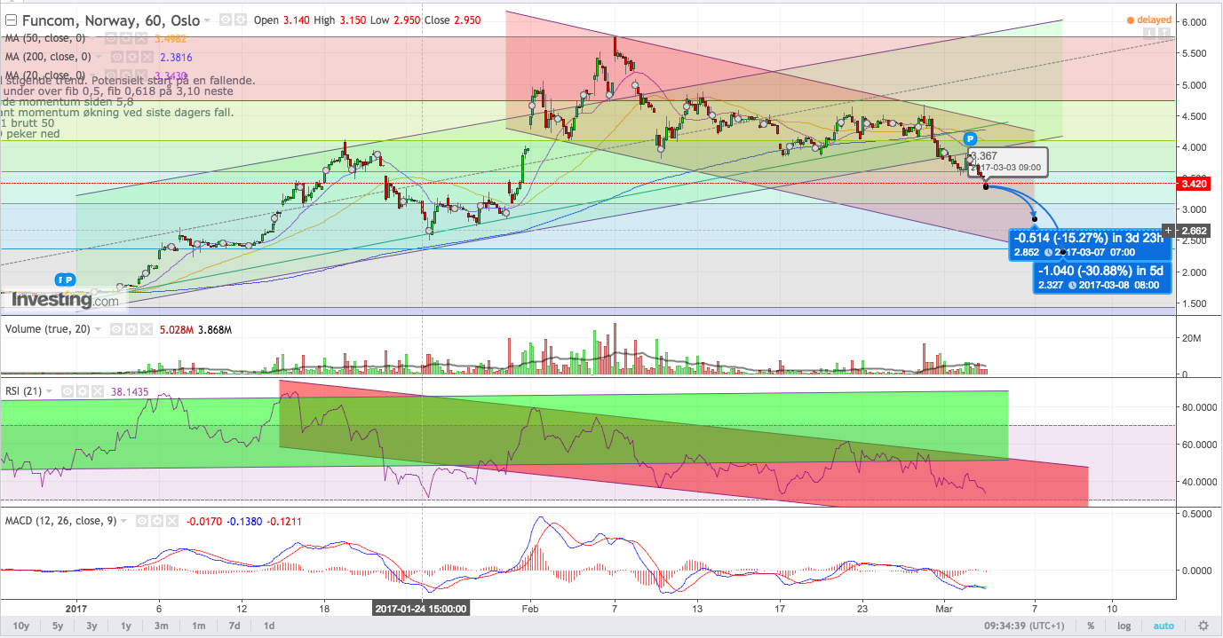 Om man tar bunn i trendkanal som worst case er det ca 30% ned, med forbehold om at det inntreffer neste uke.