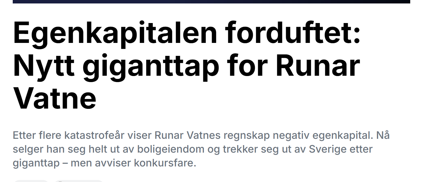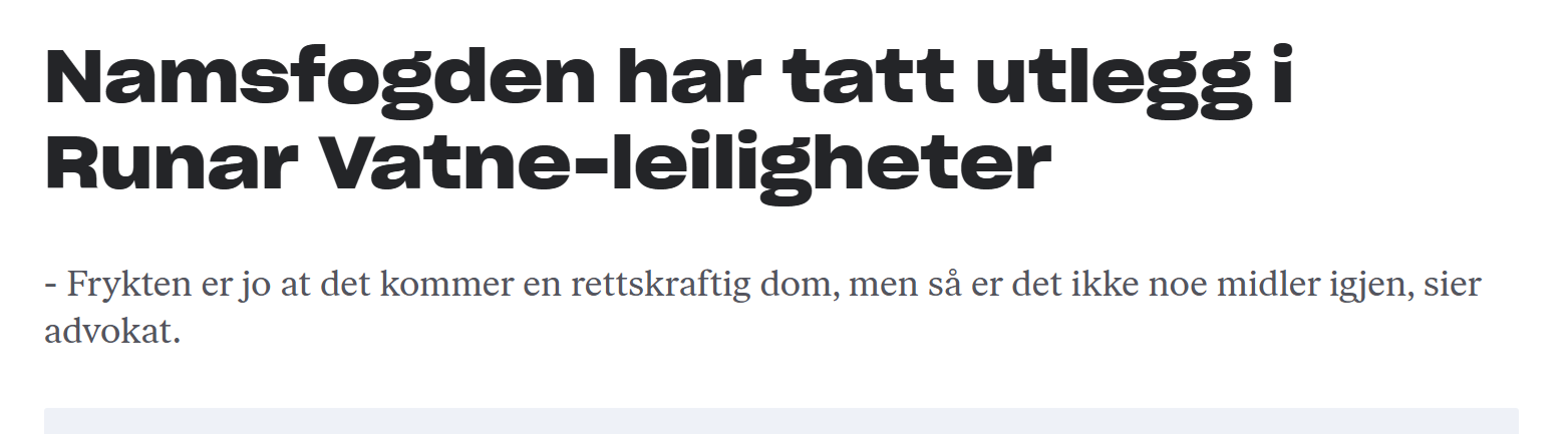 Er ikke utenkelig at det er Runar Vatne som tvangsselges her. Han har jo slitt betydelig de siste årene…