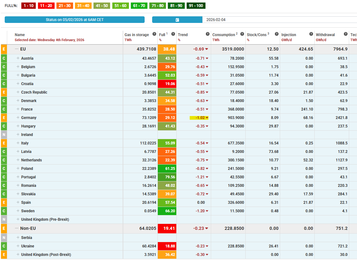 Problemet er at selv om det er mer enn nok LNG i 2026 som helthet, så trengs gassen nå. Og kommer kulda når det begynner å bli tomt er det et stort problem fordi saltgruvene i Tyskland hvor gassen lagres mister akselererende leveringskapasitet når trykket faller.