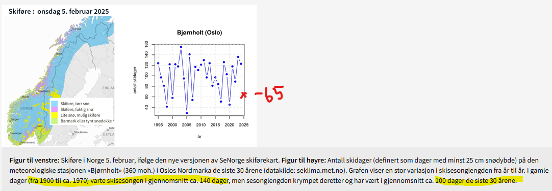 Og i tillegg var det jo eksemplet om 65 dager med snø om “snøen som falt i fjor”, snittet siste 30 år er 50% høyere enn det gis inntrykk av.