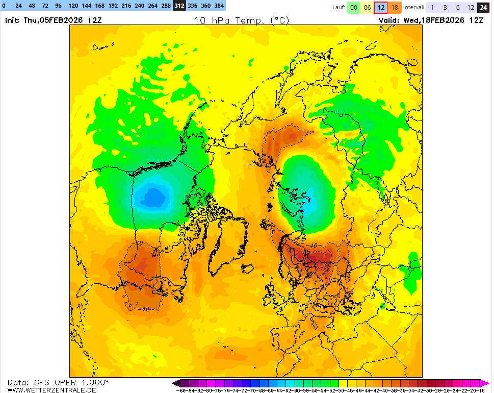Været kan fort forandre seg, men hvis du sjekker GFS-modellen for 10 hPa høyde så er det både en splitt og svekkelse i sikte, det betyr ofte at det forplanter seg nedover fra straosfæren og ned til vårt vær i troposfæren i løpet av et par uker, og kan vare kanskje 2 til 6 uker. Worst case, som faktisk er en fair sjanse for er skikkelig kulde i hele mars og litt av april.