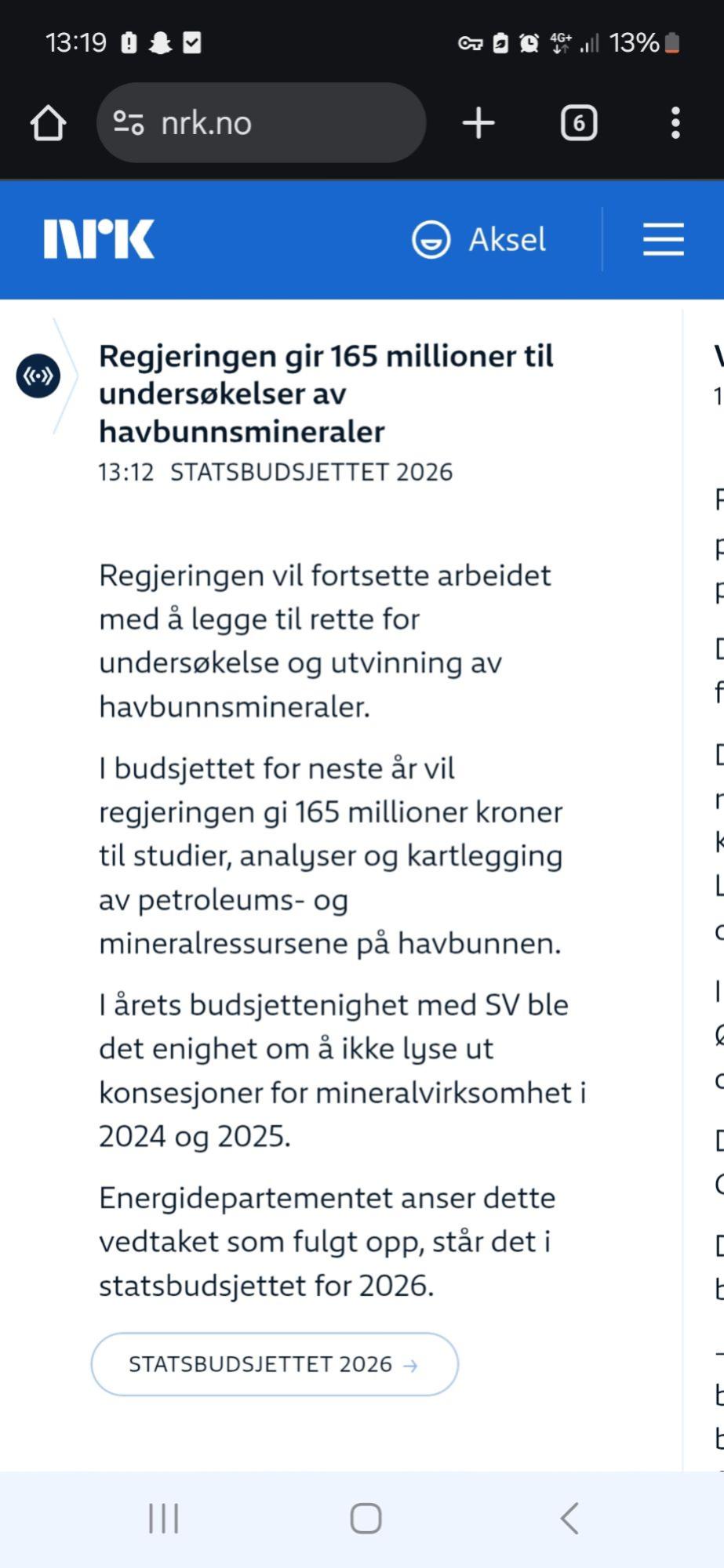 Da blir det med stor sannsynlighet utdelt konsesjoner (lisenser) i 2026. Synes nå at 165 millioner til studier, analyser og kartlegging var stusselige greier, men uansett greit å få det bekreftet via statsbudsjettet.