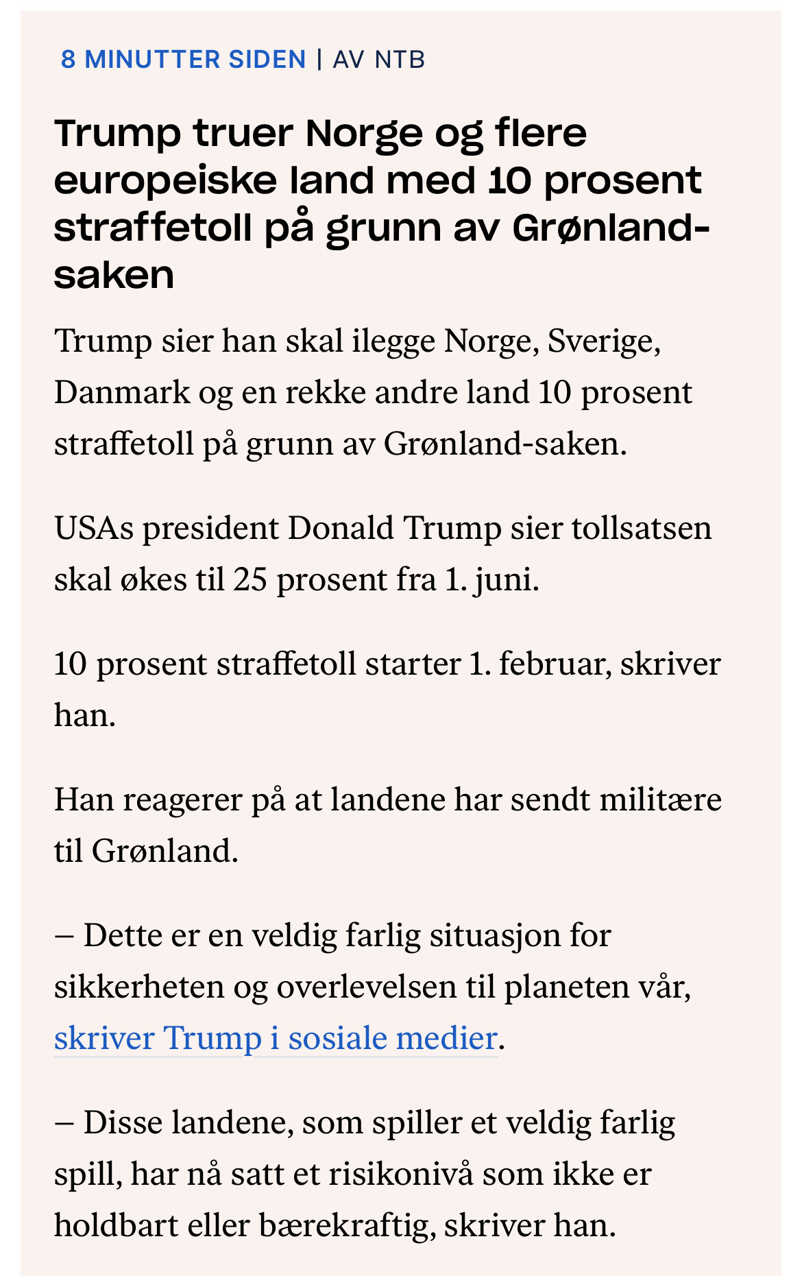 Fordi når folk som har veldig mye penger sier de vil investere fordi Donald Trump vil eie Grønland gjør at aksjekursen går opp.