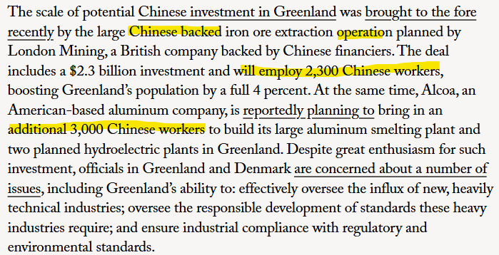 Det hadde resultert i i et stort kinesisk fotavtrykk på Grønland, med over 5000 kinesiske arbeidere der.