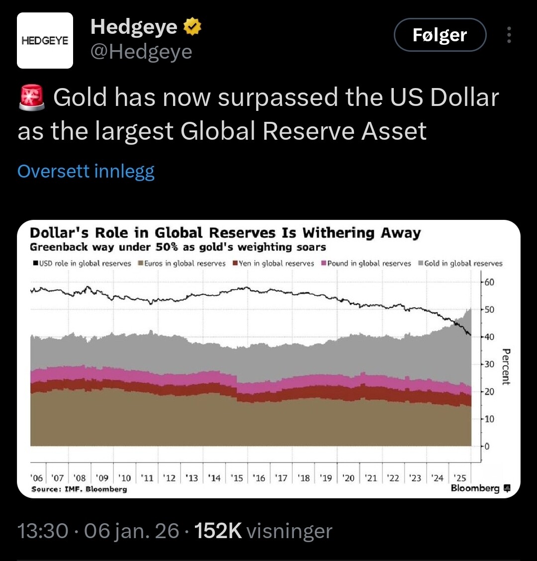 Hehe i lurer på hvorfor alle land hamstre gull, og gull kommer til og fortsette i 2026 som i 2025….