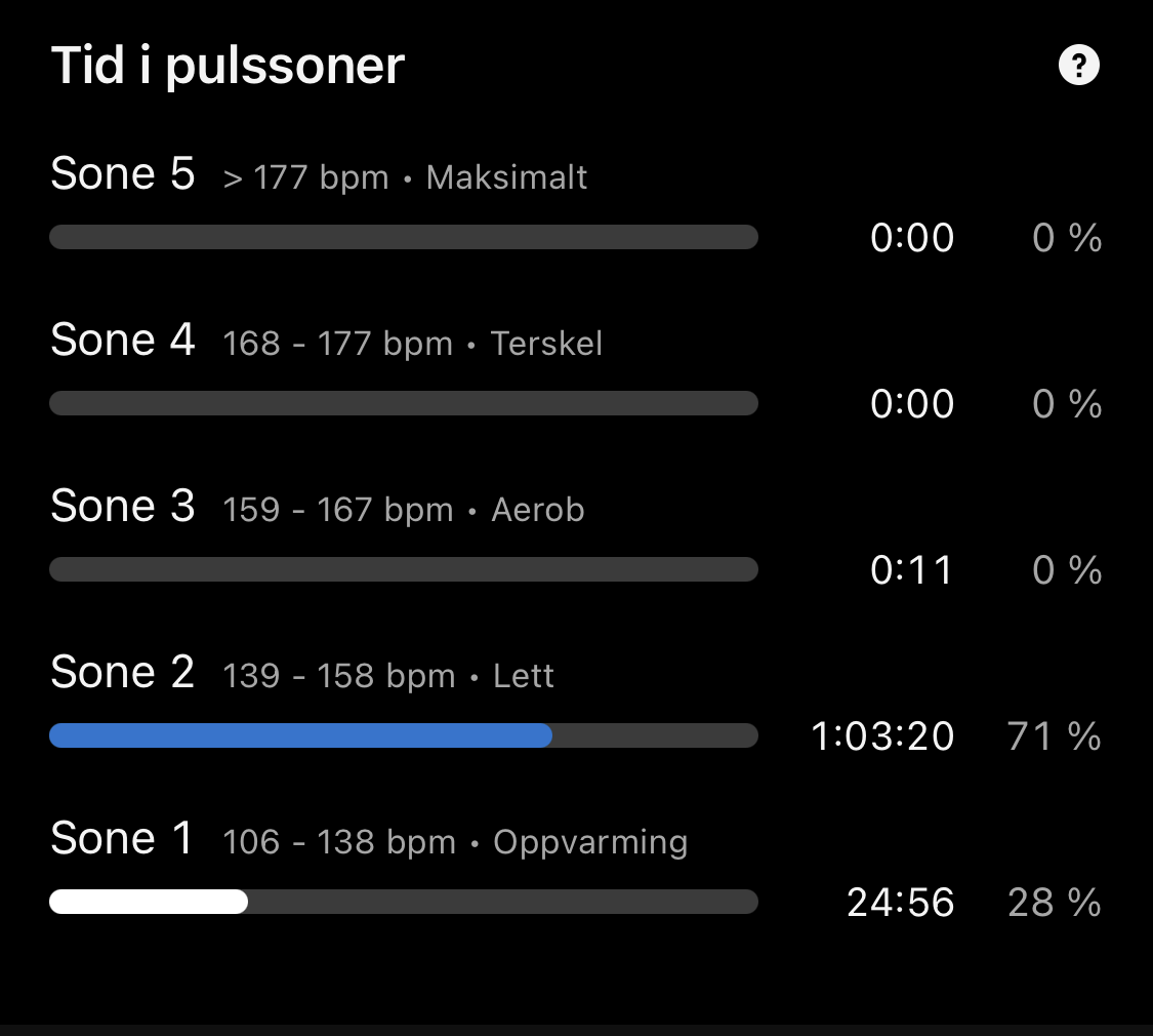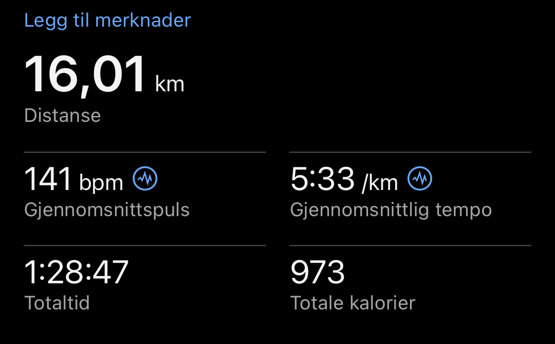 Men jeg hadde ikke klart de rolige løpeturene uten treningsklokke. Jeg må fokusere meg veldig for at pulsen skal ligge lavt, både på tempo, teknikk men ikke minst på pusten (rolig pust/lang pust ut), det blir litt som et morsomt retro spill å forsøke å holde seg under 139