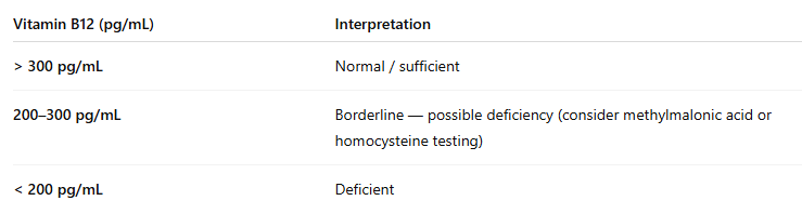 Når jeg sjekket litt senere var B12 falt til 270 ish fra 340, uten at noen reagerte på det. Men når jeg selv sendte melding så skulle jeg få ny oppfølging etter en stund på tilskudd. Samboer som hadde like lave verdier fikk ingen tilbakemelding, selv om hun tok blodprøver en stund etter meg… Vi har samme fastlege…