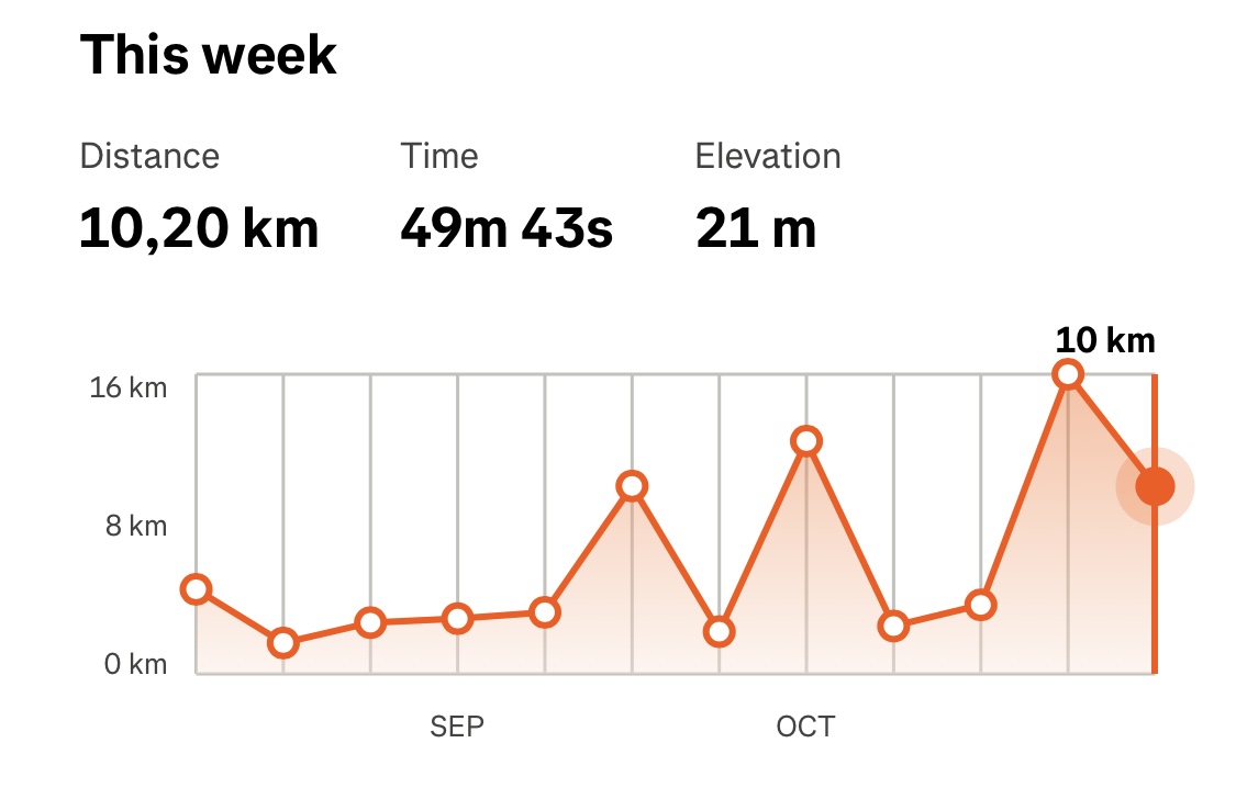 Fornøyd med å klokke inn 10km og nesten 50 minutter løping denne uken når ene økten var intervallbasert.